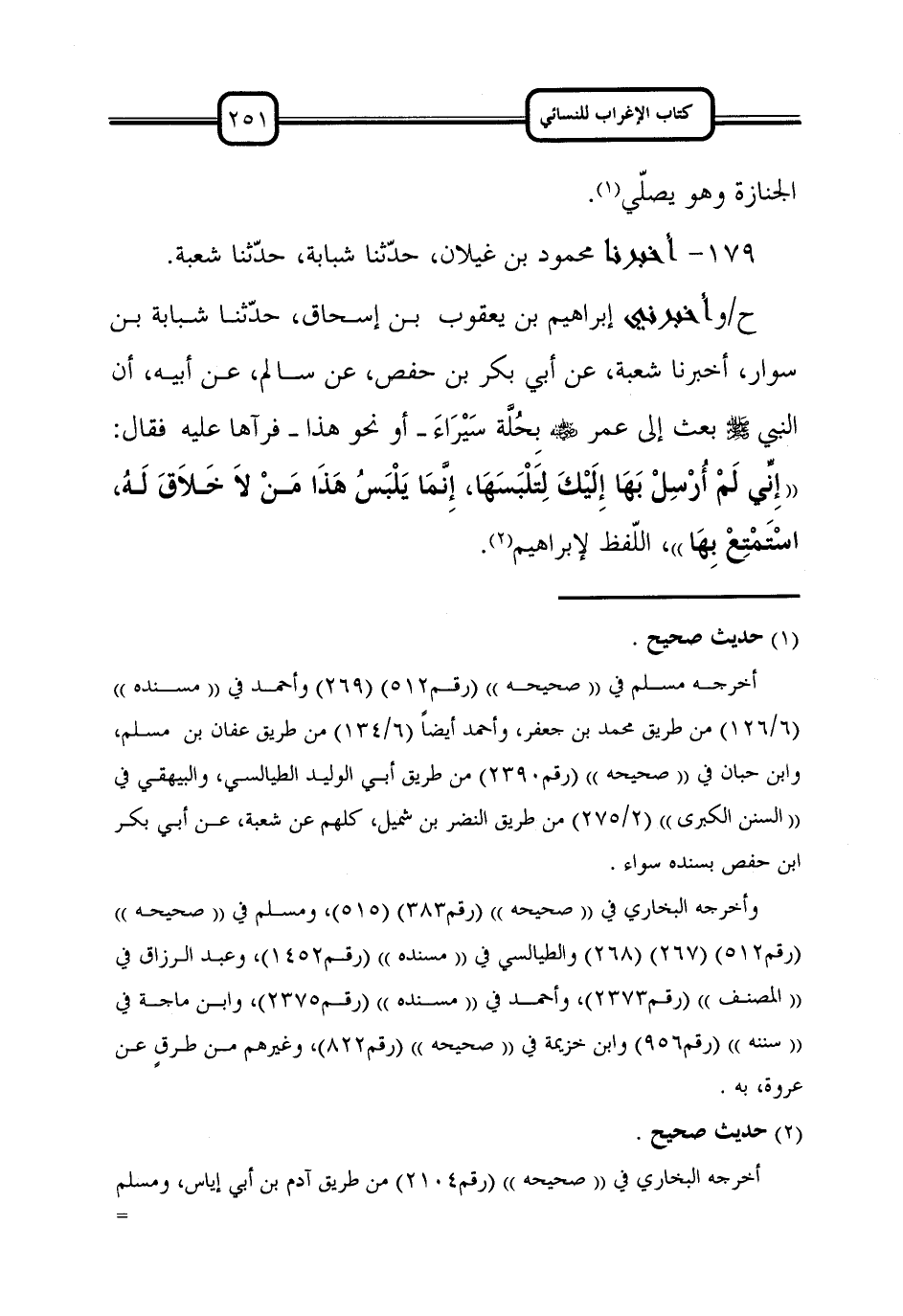 179 - أَخْبَرَنَا مَحْمُودُ بْنُ غَيْلانَ، حَدَّثَنَا شَبَابَةُ، حَدَّثَنَا شُعْبَةُ.