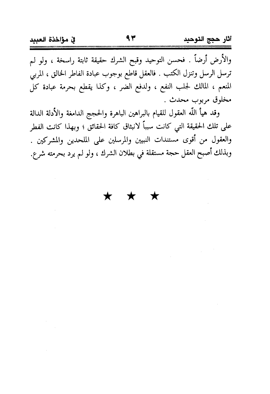 وقد هيأ الله العقول للقيام بالبراهين الباهرة والحجج الدامغة والأدلة الدالة على تلك الحقيقة التي كانت سبباً لانبثاق كافة الحقائق؛ وبهذا كانت الفطر والعقول من أقوى مستندات النبيين والمرسلين على الملحدين والمشركين. وبذلك أصبح العقل حجة مستقلة في بطلان الشرك، ولو لم يرد بحرمته شرع.
