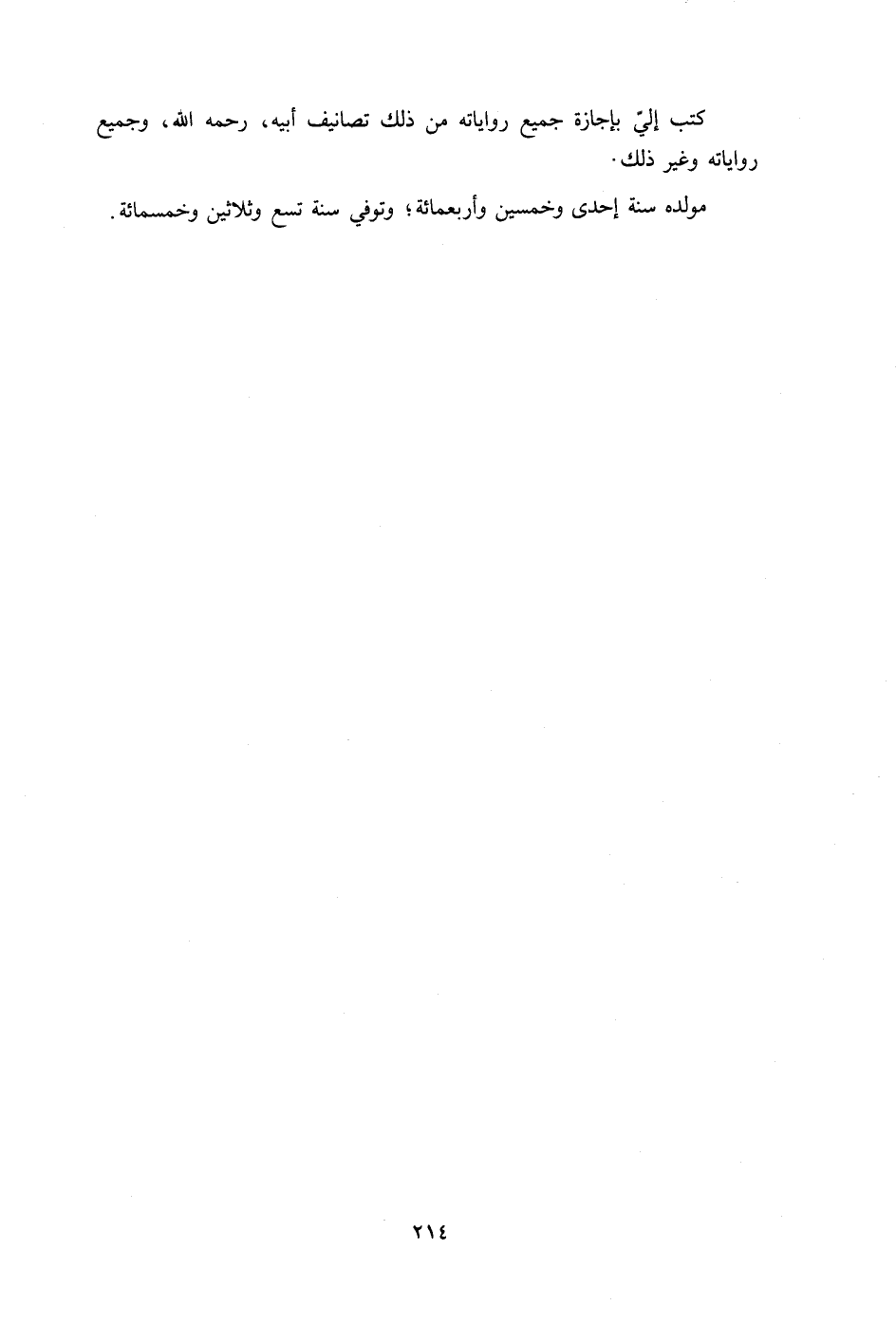 كتب إلي بإجازة جميع رواياته من ذلك تصانيف أبيه، رحمه الله، وجميع رواياته وغير ذلك.