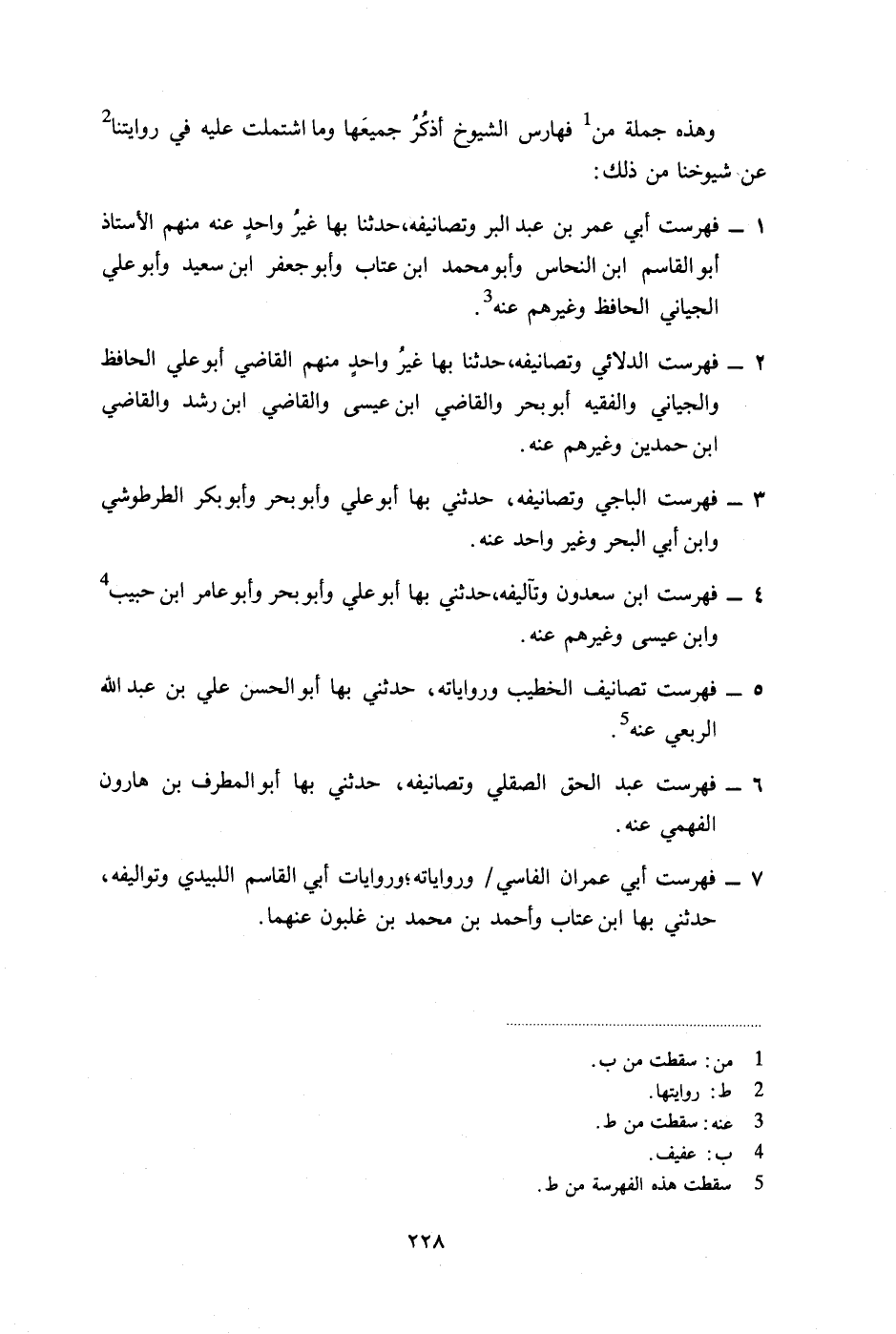 3- فهرست الباجي وتصانيفه، حدثني بها أبو علي وأبو بحر وأبو بكر الطرطوشي وابن أبي البحر وغير واحد عنه.