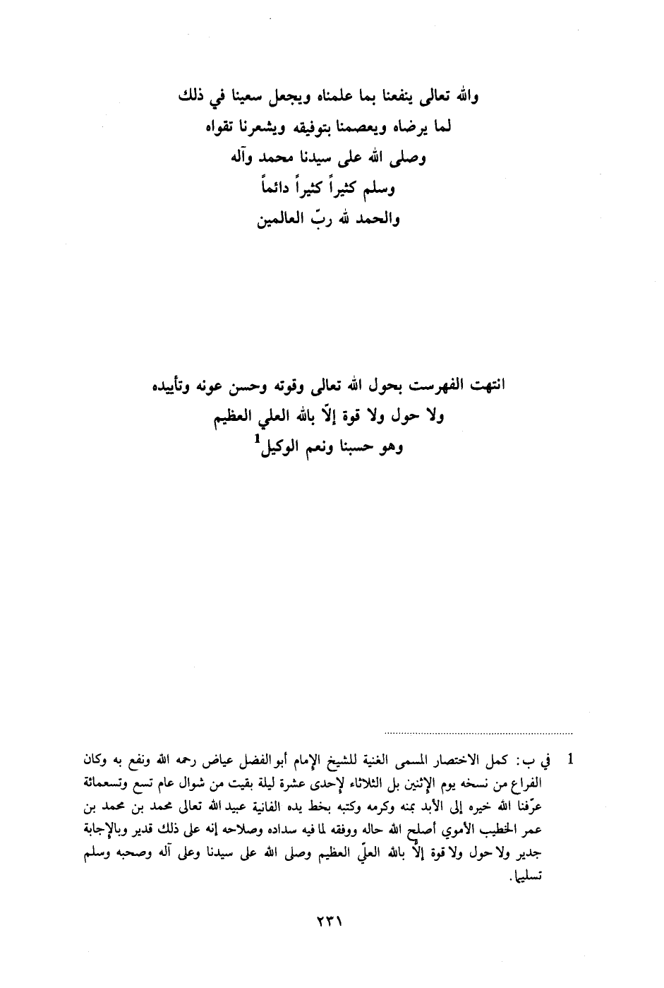 انتهت الفهرست بحول الله تعالى وقوته وحسن عونه وتأييده ولا حول ولا قوة بالله العلي العظيم وهو حسبنا ونعم الوكيل