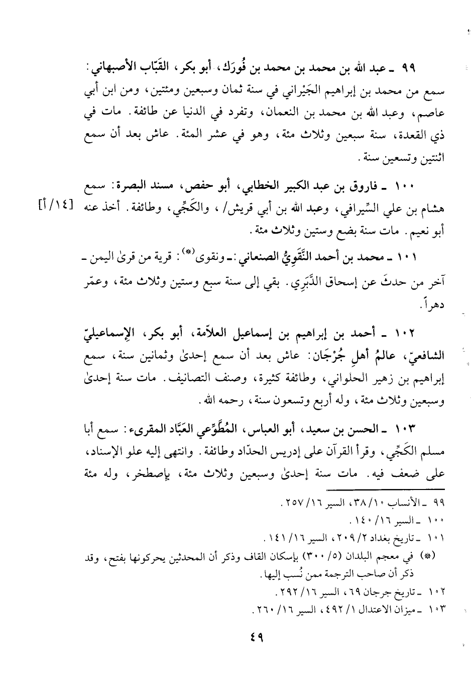 101- محمد بن أحمد النقوي الصنعاني: -ونقوى: قرية من قرى اليمن- آخر من حدث عن إسحاق الدبري. بقي إلى سنة سبع وستين وثلاث مئة، وعمر دهراً.