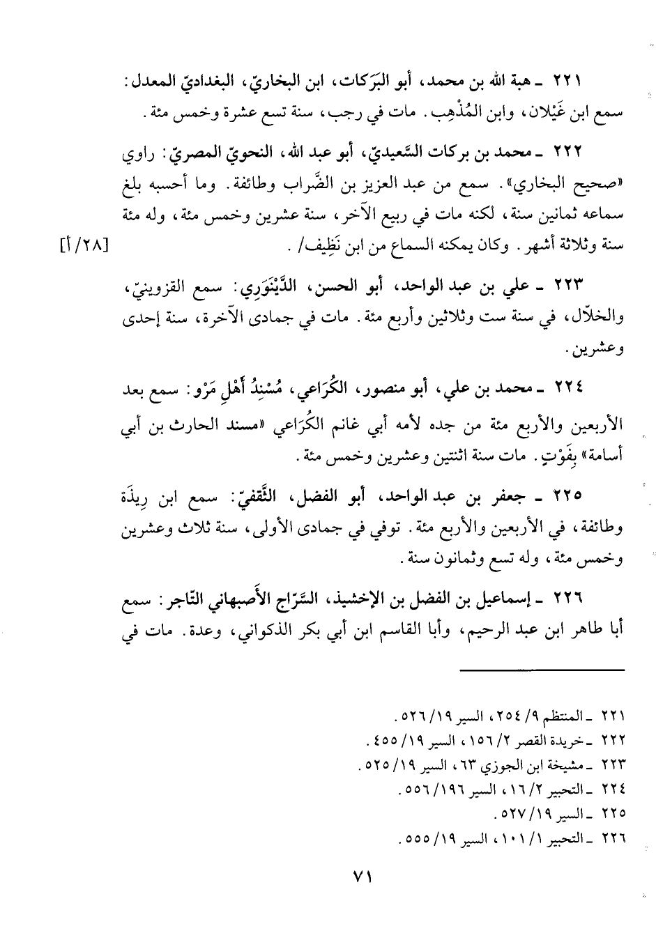 221- هبة الله بن محمد، أبو البركات، ابن البخاري، البغدادي المعدل: سمع ابن غيلان، وابن المذهب. مات في رجب، سنة تسع عشرة وخمس مئة.