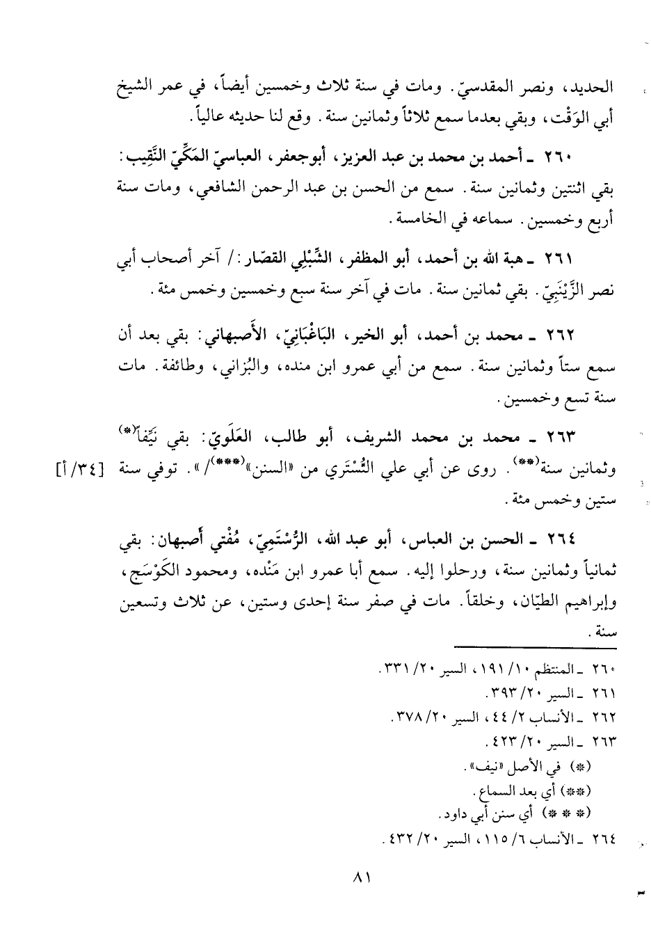 261- هبة الله بن أحمد، أبو المظفر، الشبلي القصار: آخر أصحاب أبي نصر الزينبي. بقي ثمانين سنة. مات في آخر سنة سبع وخمسين وخمس مئة.