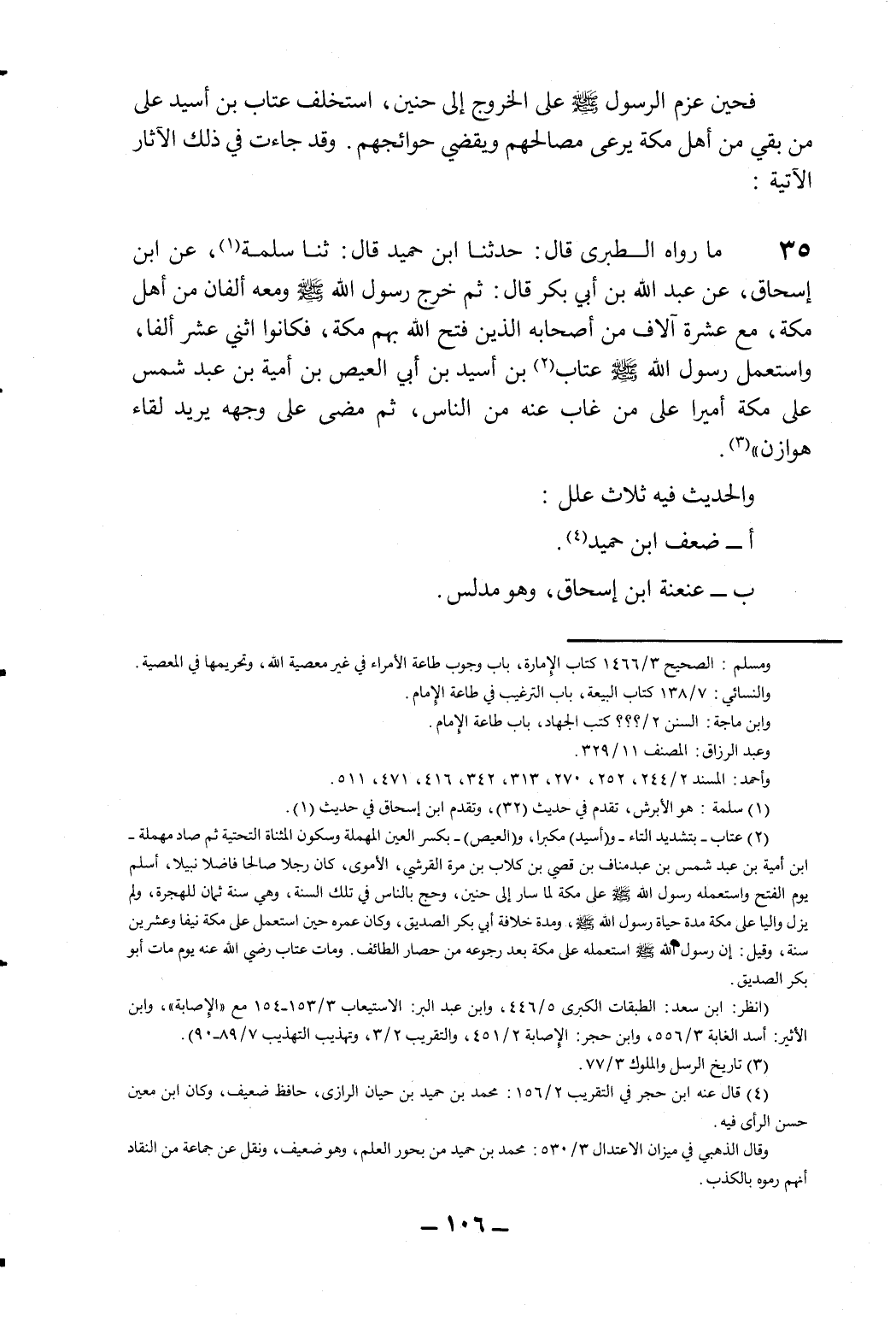 4 قال عنه ابن حجر في التقريب 2/156: محمد بن حميد بن حيان الرازي، حافظ ضعيف، وكان ابن معين حسن الرأي فيه.