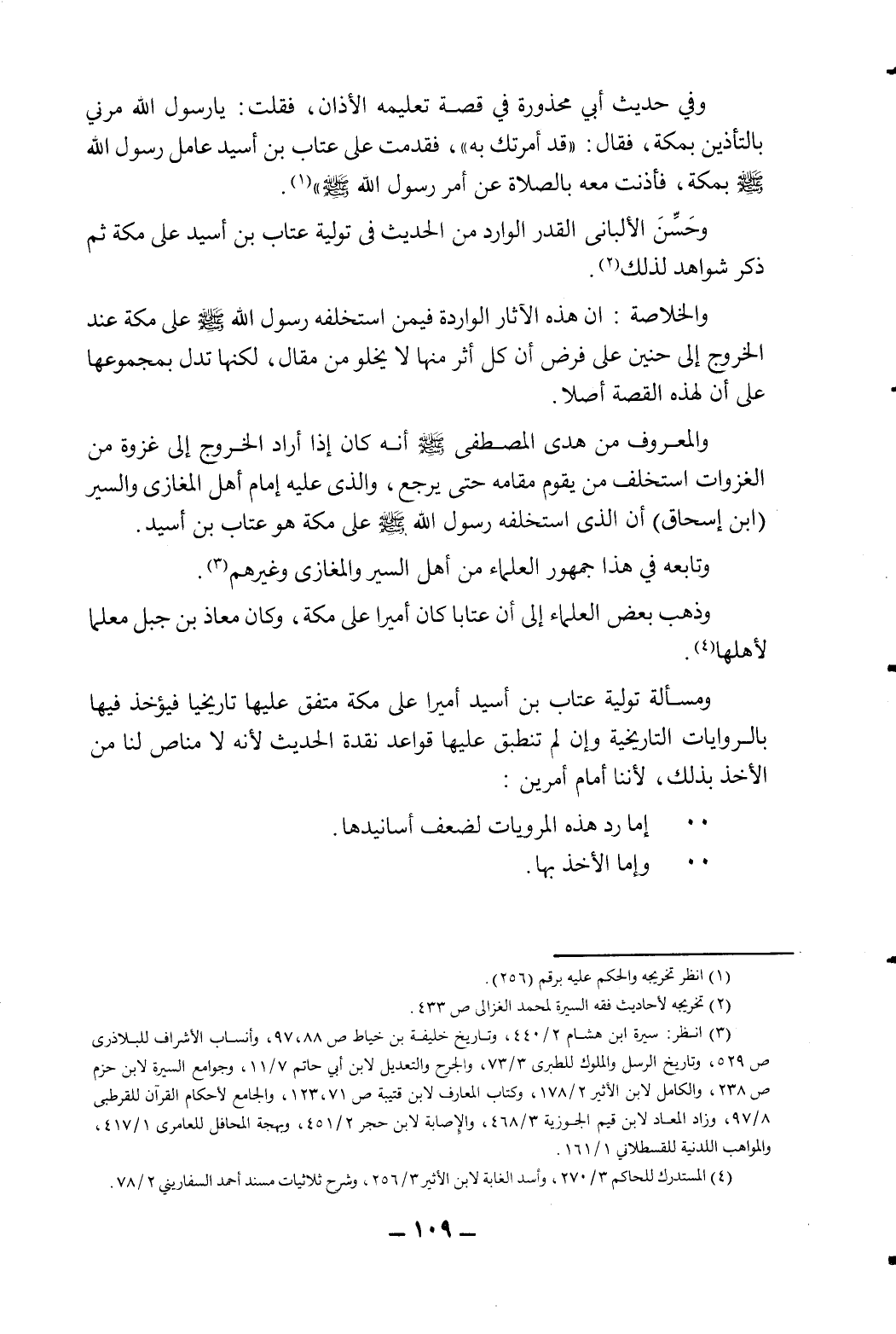 ومسألة تولية عتاب بن أسيد أميرا على مكة متفق عليها تاريخيا فيؤخذ فيها بالروايات التاريخية وإن لم تنطبق عليها قواعد نقدة الحديث لأنه لا مناص لنا من الخذ بذلك، لأننا أمام أمرين: