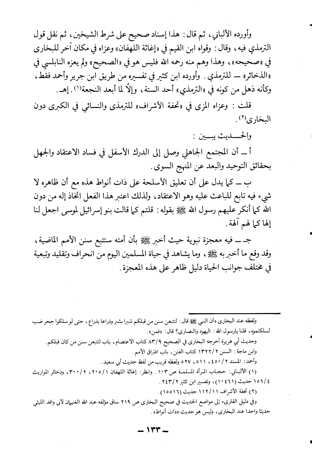 1 الألباني: حجاب المرأة المسلمة ص103. وانظر: إغاثة اللهفان 1/205، 2/300، وذخائر المواريث 4/156 حديث (10461) ، وتفسير ابن كثير 2/243.