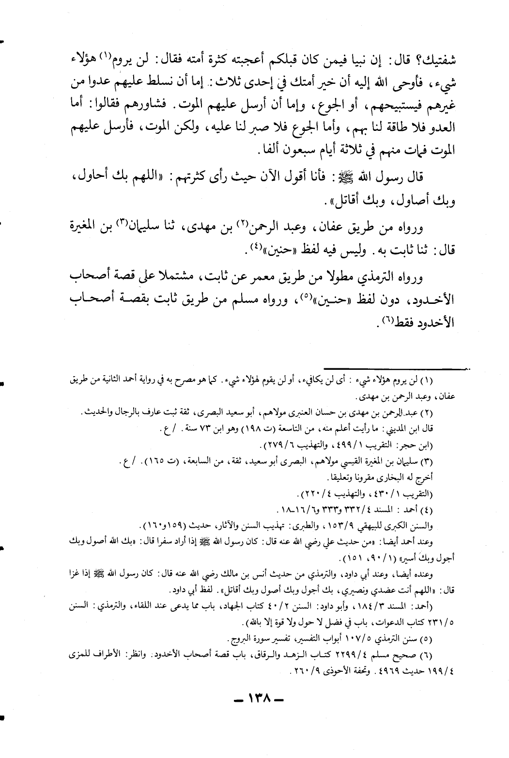 ورواه من طريق عفان، وعبد الرحمن2 بن مهدي، ثنا سليمان3 بن المغيرة قال: ثنا ثابت به. وليس فيه لفظ "حنين"4.