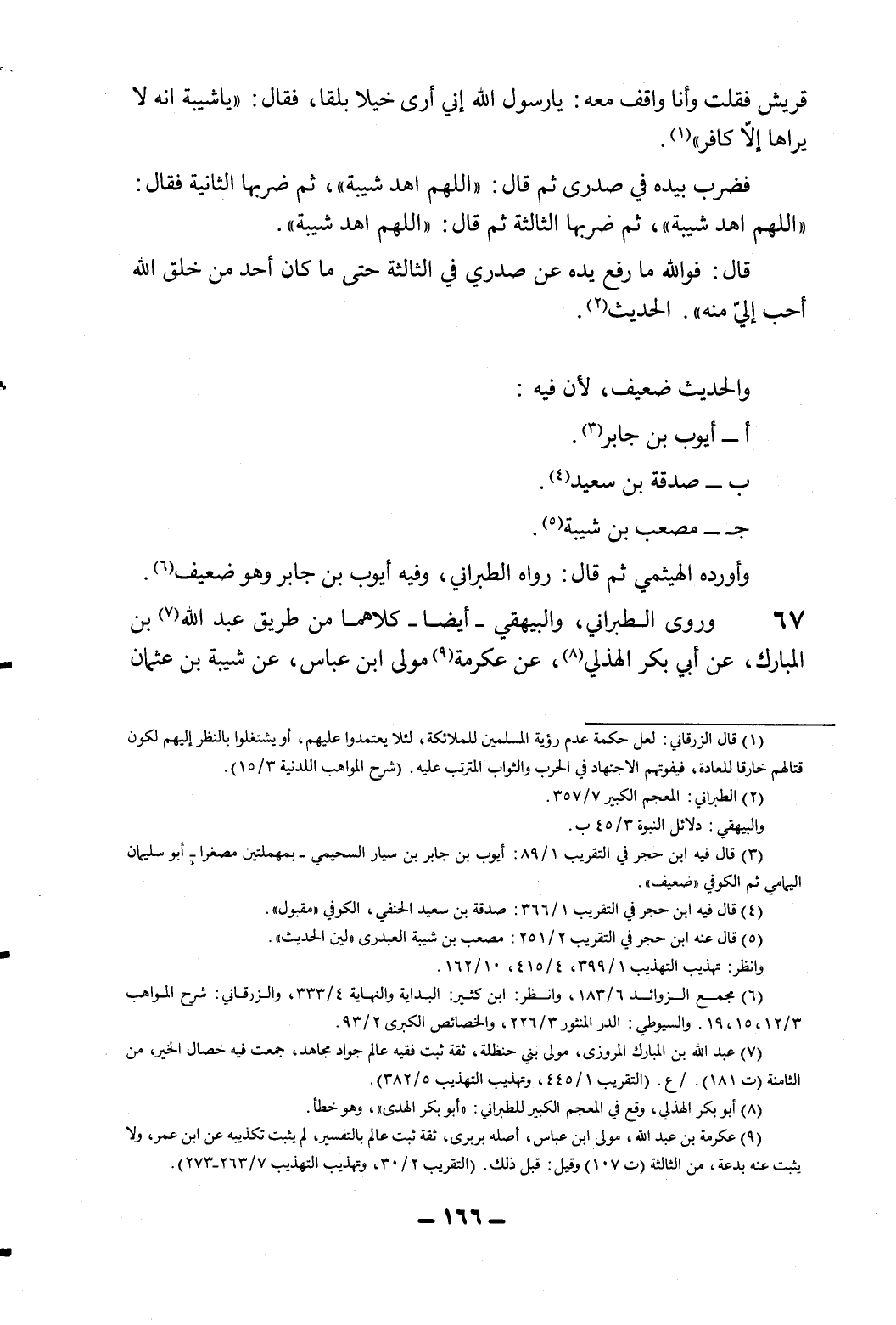 67- وروى الطبراني، والبيهقي – أيضا – كلاهما من طريق عبد الله7 بن المبارك، عن أبي بكر الهذلي8، عن عكرمة9 مولى ابن عباس، عن شيبة بن عثمان