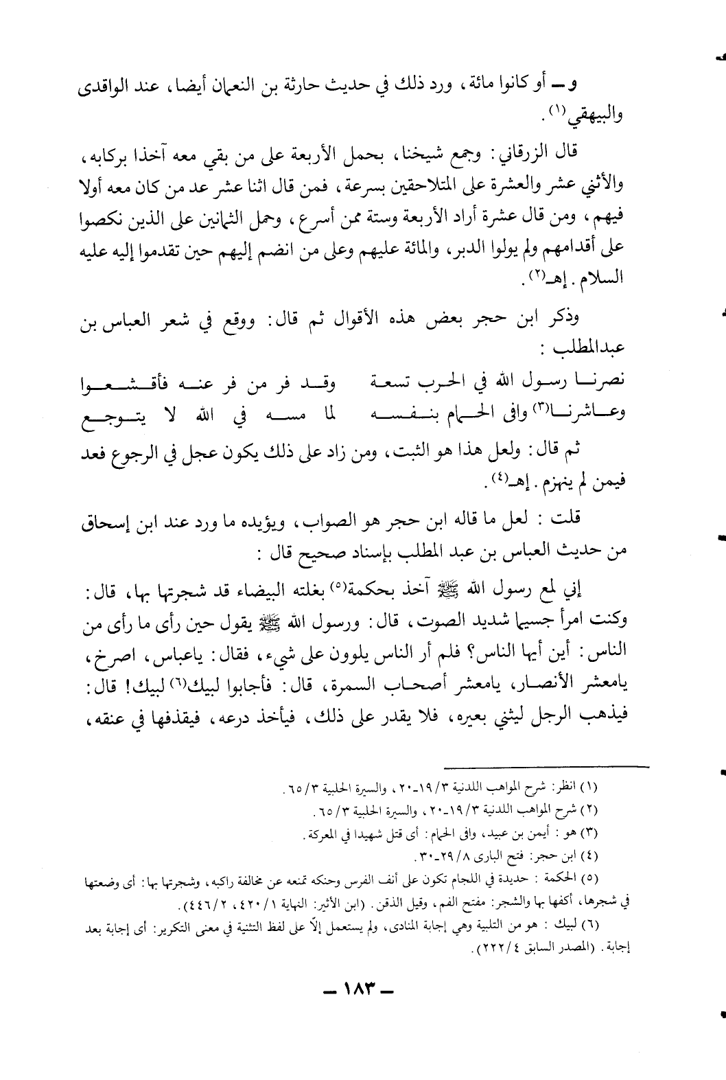 قال الزرقاني: وجمع شيخنا، بحمل الأربعة على من بقي معه آخذا بركابه، والاثنى عشر والعشرة على المتلاحقين بسرعة، فمن قال اثنا عشر عد من كان معه أولا فيهم، ومن قال عشرة أراد الأربعة وستة ممن أسرع، وحمل الثمانين على الذين نكصوا على أقدامهم ولم يولوا الدبر، والمائة عليهم وعلى من انضم إليهم حين تقدموا إليه عليه السلام. إ?2.