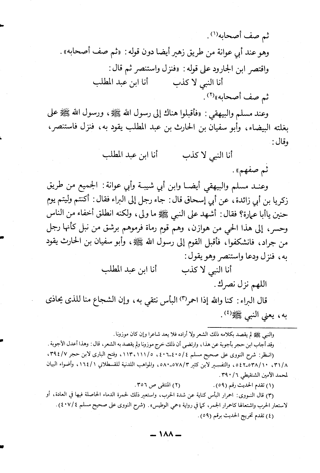وعند مسلم والبيهقي: (فأقبلوا هناك إلى رسول الله - صلى الله عليه وسلم -، ورسول الله - صلى الله عليه وسلم - على بغلته البيضاء، وأبو سفيان بن الحارث بن عبد المطلب يقود به، فنزل فاستنصر وقال: