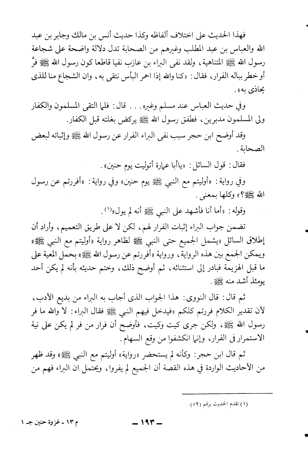 وقد أوضح ابن حجر سبب نفي البراء الفرار عن رسول الله - صلى الله عليه وسلم - وإثباته لبعض الصحابة.
