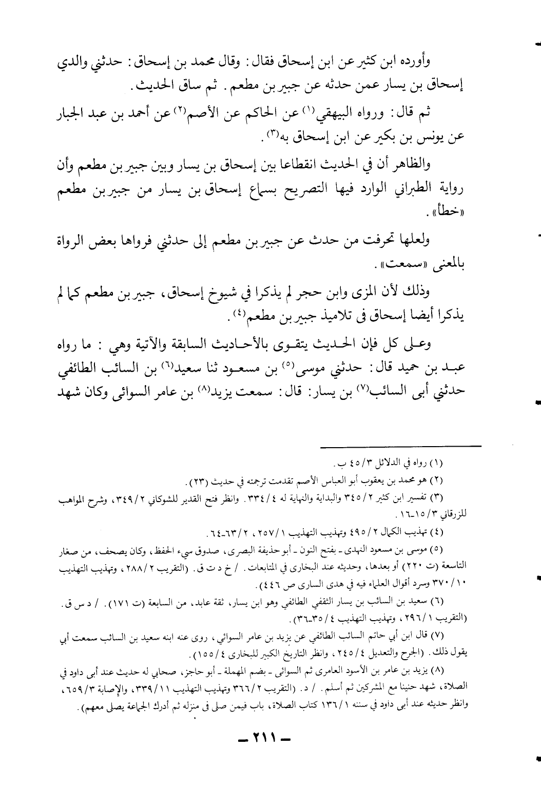 وذلك لأن المزي وابن حجر لم يذكرا في شيوخ إسحاق، جبير بن مطعم كما لم يذكرا أيضا إسحاق في تلاميذ جبير بن مطعم4.