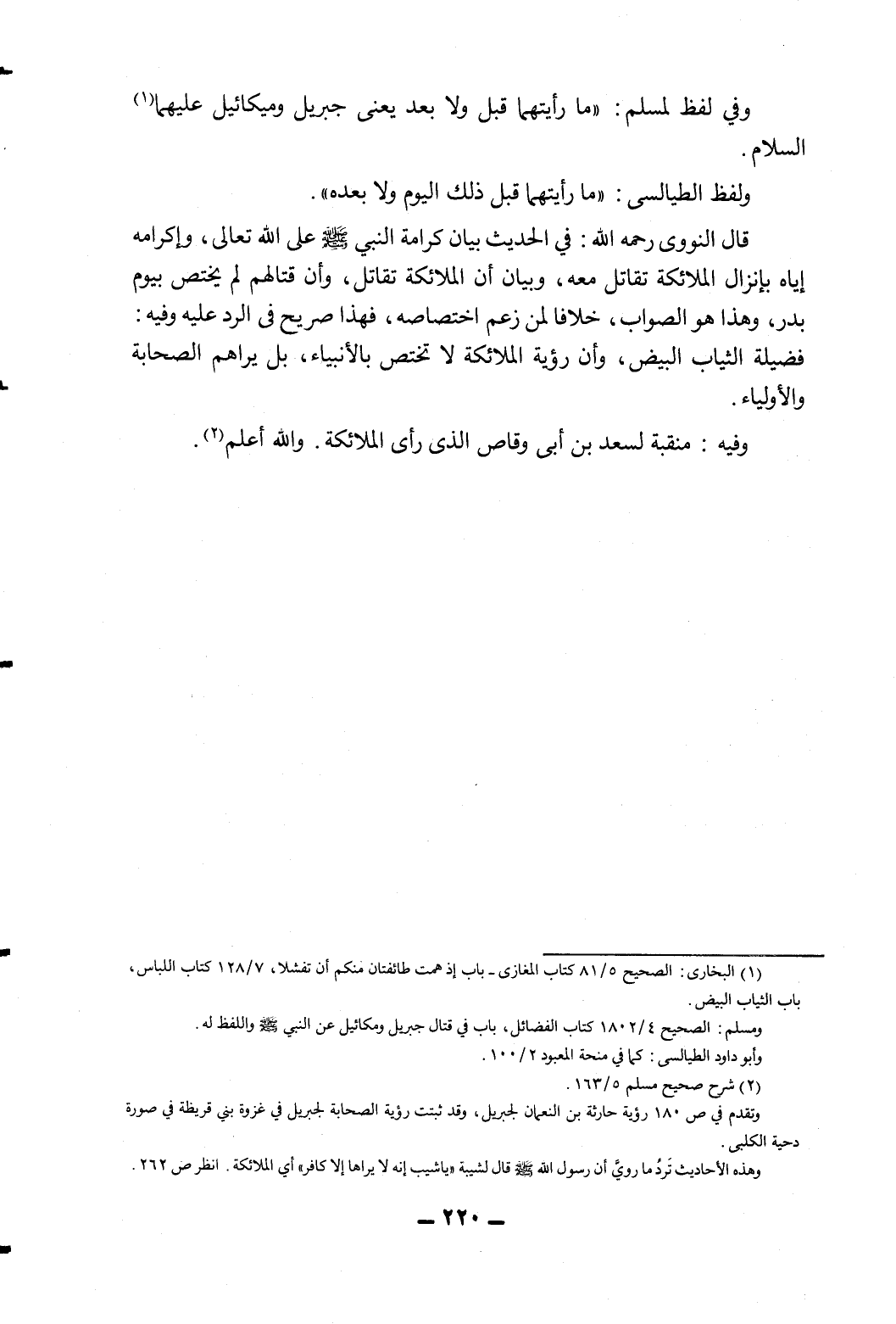 وهذه الأحاديث ترد ما روي أن رسول الله صلى الله عليه وسلم قال لشيبة: "يا شيب إنه لا يراها إلا كافر" أي الملائكة. انظر ص 262.