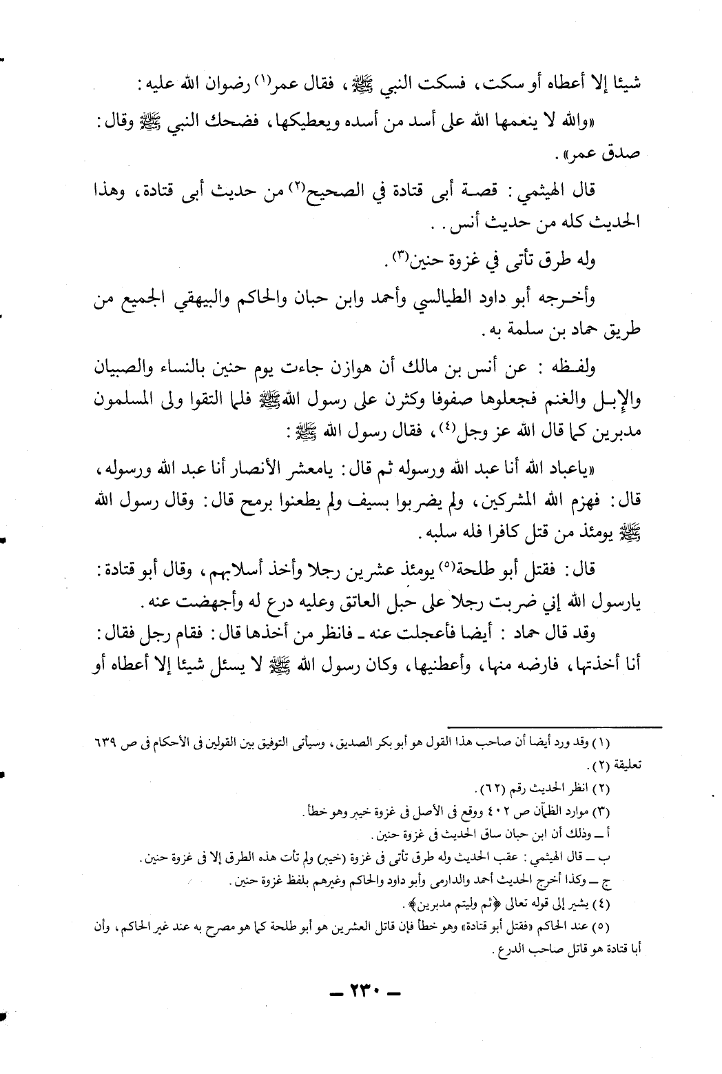ب- قال الهيثمي عقب الحديث: وله طرق تأتي في غزوة (خيبر) ولم تأت هذه الطرق إلا في غزوة حنين.
