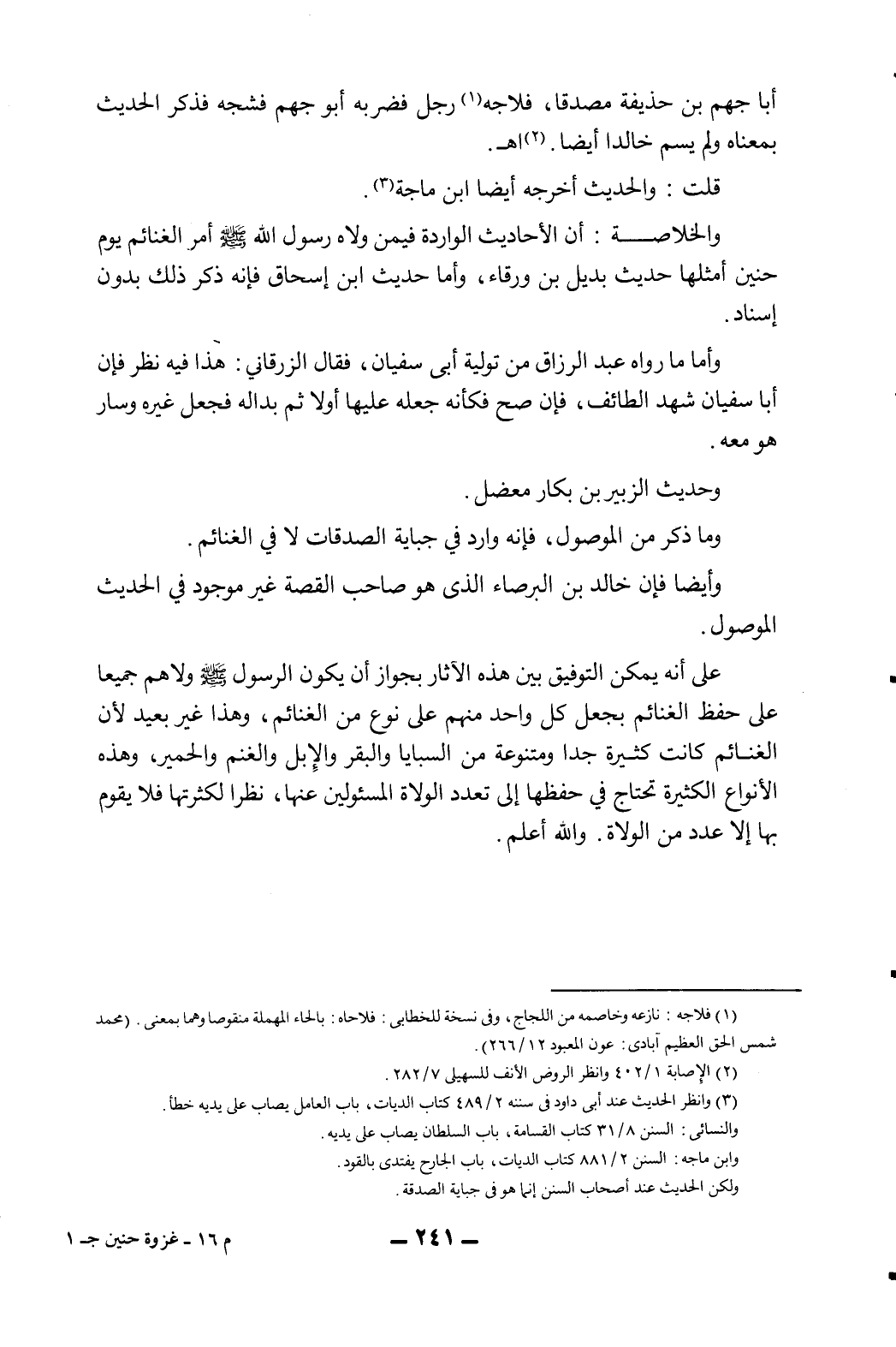 أبا جهم بن حذيفة مصدقا، فلاجه1 رجل فضربه أبو جهم فشجه فذكر الحديث بمعناه ولم يسم خالدا أيضا.2اهـ.