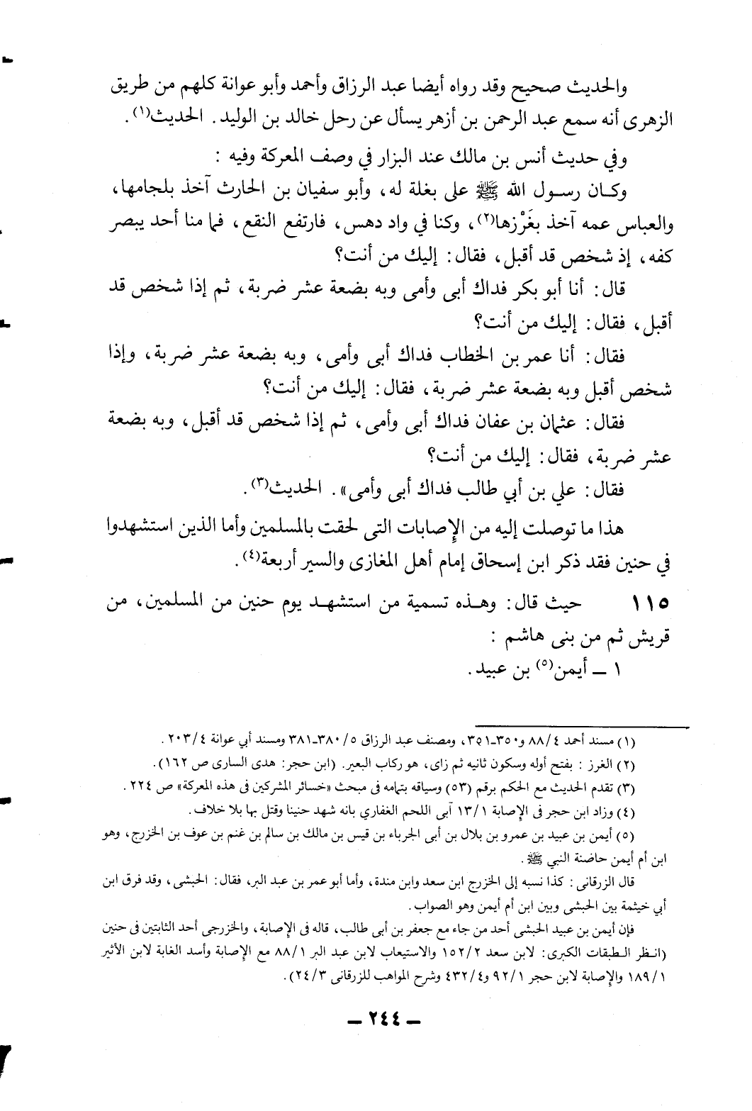 115- حيث قال: "وهذه تسمية من استشهد يوم حنين من المسلمين، من قريش ثم من بني هاشم":