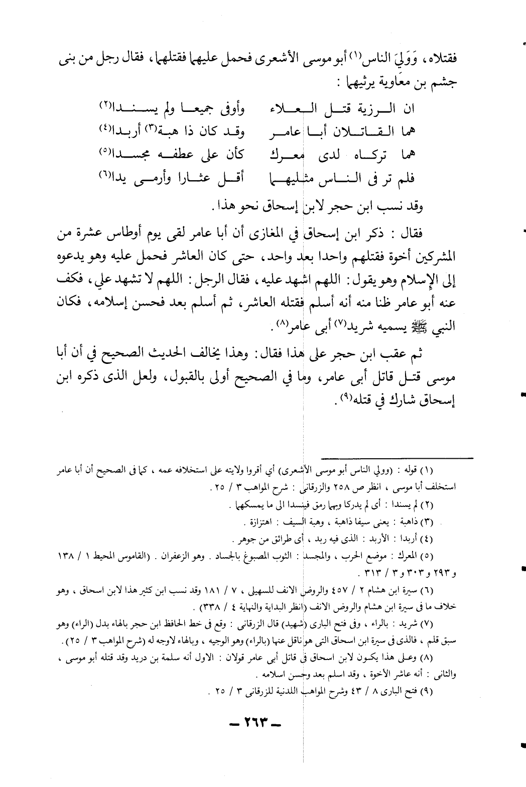 8 وعلى هذا يكون لابن إسحاق في قاتل أبي عامر قولان: الأول أنه سلمة بن دريد وقد قتله أبو موسى، والثاني: أنه عاشر الإخوة، وقد أسلم بعد وحسن إسلامه.