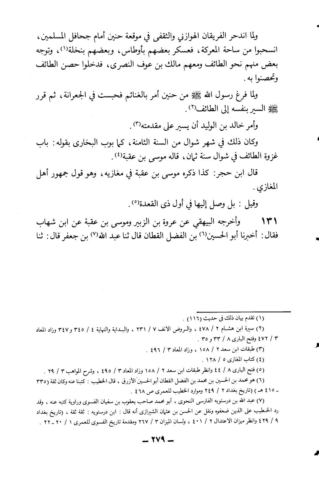 5 فتح الباري 8/44 وانظر طبقات ابن سعد 2/158وزاد المعاد 3/495، شرح المواهب 3/29.