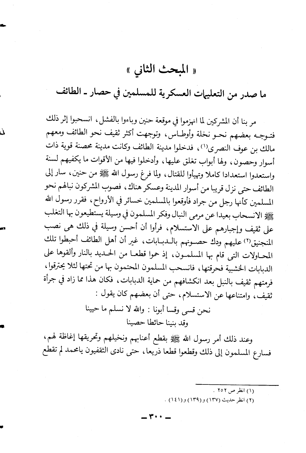 المبحث الثاني: ما صدر من التعليمات العسكرية للمسلمين في حصار - الطائف