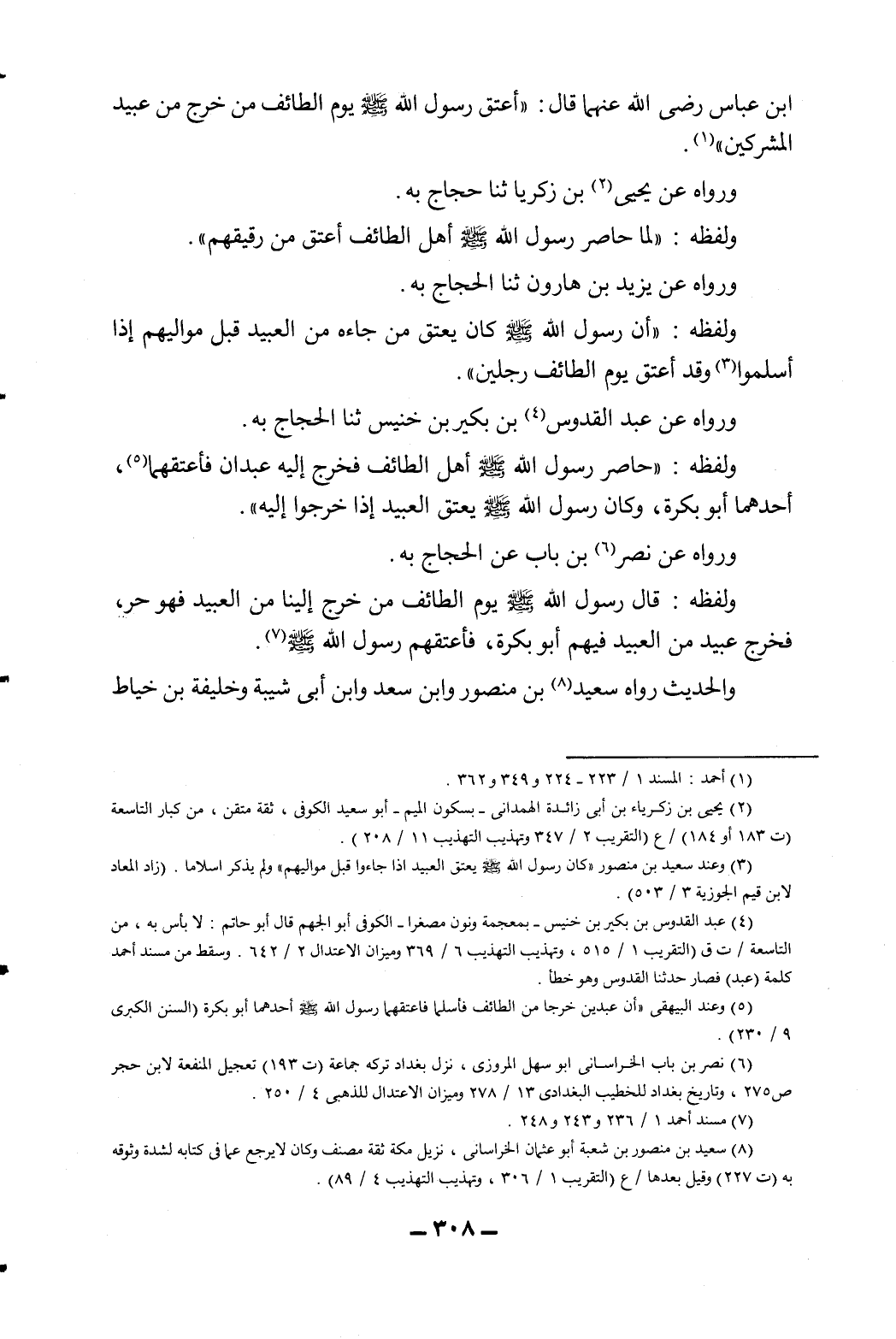 ابن عباس رضي الله عنهما قال: "أعتق رسول الله يوم الطائف من خرج من عبيد المشركين" 1. ورواه عن يحيى2 بن زكريا ثنا حجاج به.