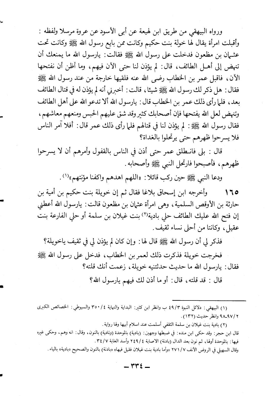 165- وأخرجه ابن إسحاق بلاغا فقال: ثم إن خويلة بنت حكيم بن أمية بن حارثة بن الأوقص السلمية، وهي امرأة عثمان بن مظعون قالت: يا رسول الله أعطني إن فتح الله عليك الطائف حلي بادية2 بنت غيلان بن سلمة أو حلي الفارعة بنت عقيل، وكانتا من أحلى نساء ثقيف. فذكر لي أن رسول الله صلى الله عليه وسلم قال لها: "وإن كان لم يؤذن لي في ثقيف يا خويلة؟ "