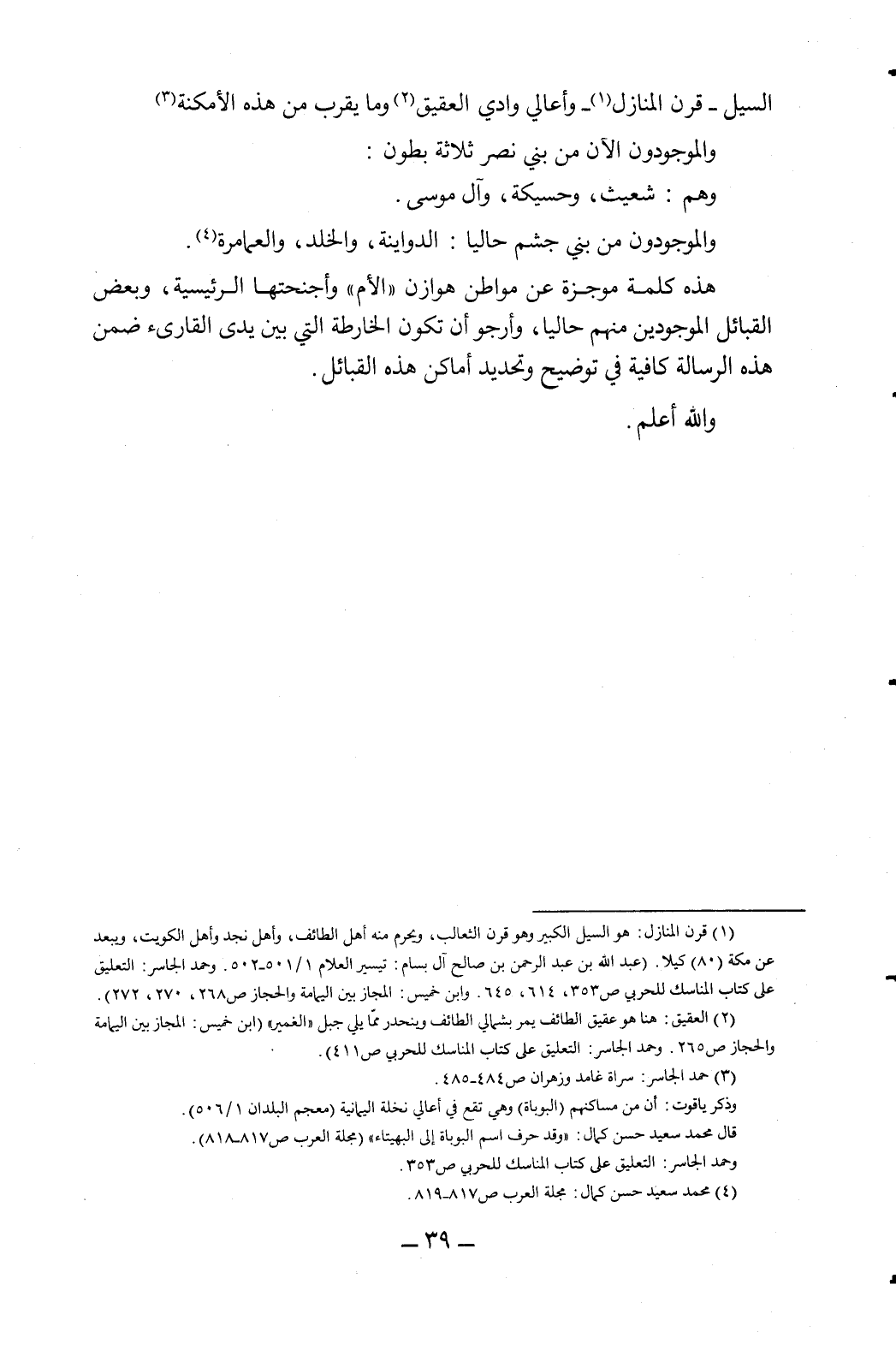 السيل – قرن المنازل1 - وأعالي وادي العقيق2 وما يقرب من هذه الأمكنة3 والموجودون الآن من بني نصر ثلاثة بطون: