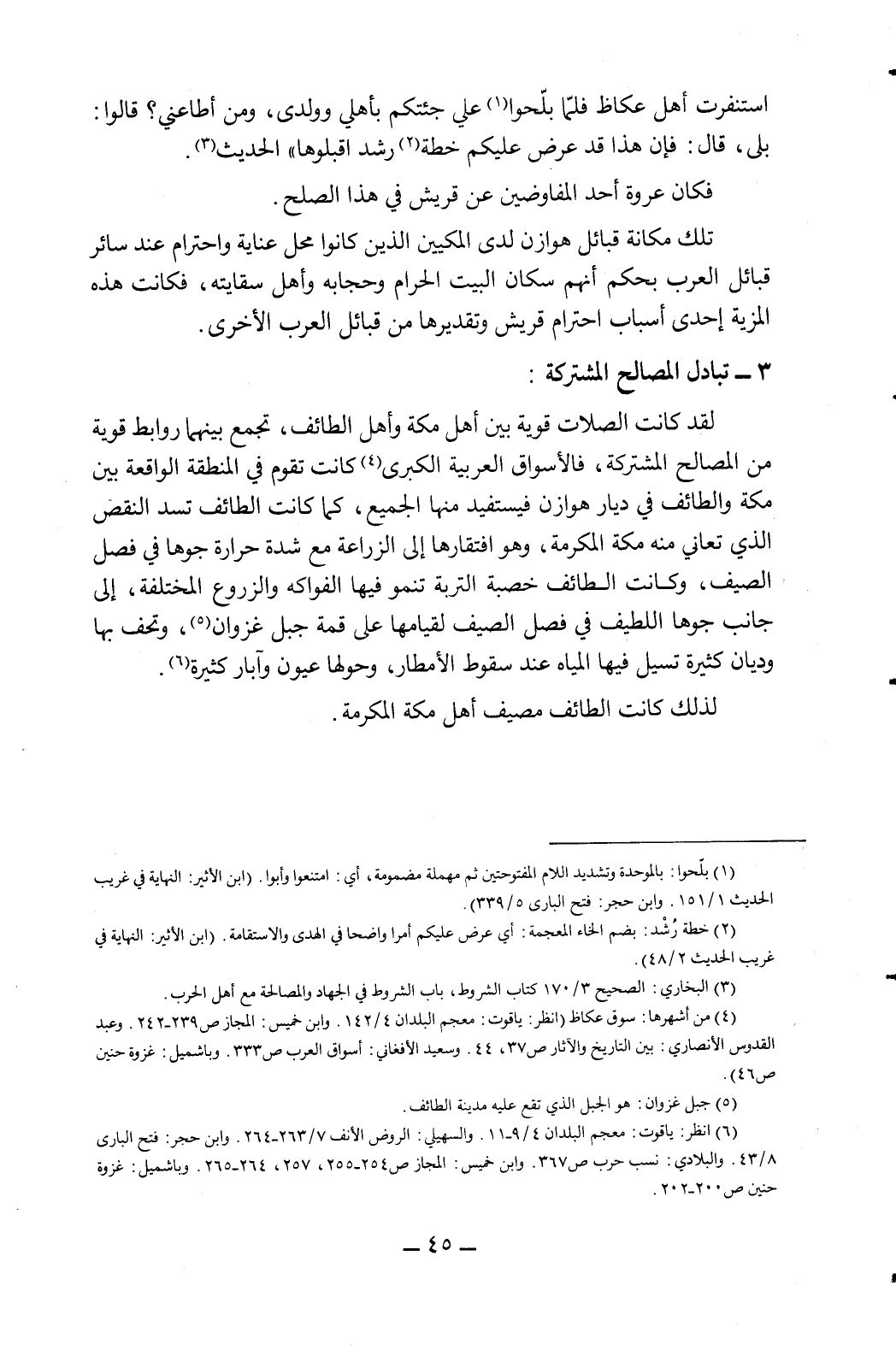 6 انظر: (ياقوت: معجم البلدان 4/9-11.والسهلي: الروض الأنف7/263-264. وابن حجر: فتح الباري 8/43.والبلادي: نسب حرب ص367.وابن خميس: المجاز ص254-255، 257، 264-265.وباشميل: غزوة حنين ص200-202) .