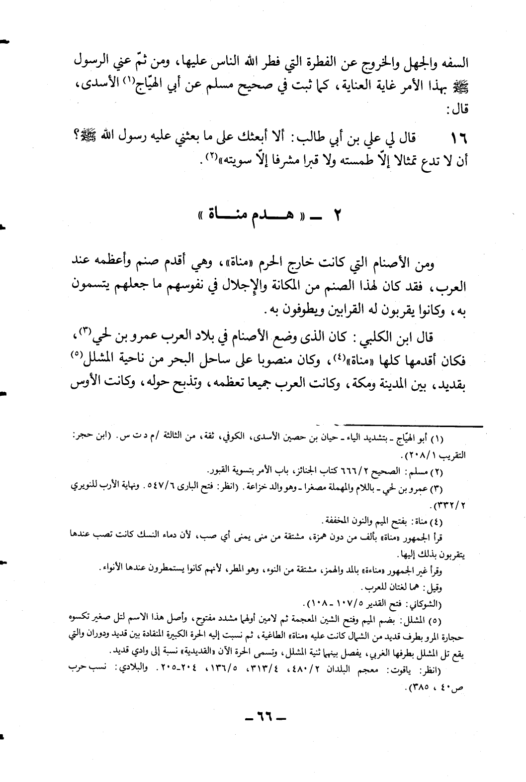 16- قال لي عليّ بن أبي طالب: "ألا أبعثك على ما بعثني عليه رسول الله - صلى الله عليه وسلم -؟ "أن لا تدع تمثالا إلا طمسته ولا قبرا مشرفا إلاّ سويته" 2.