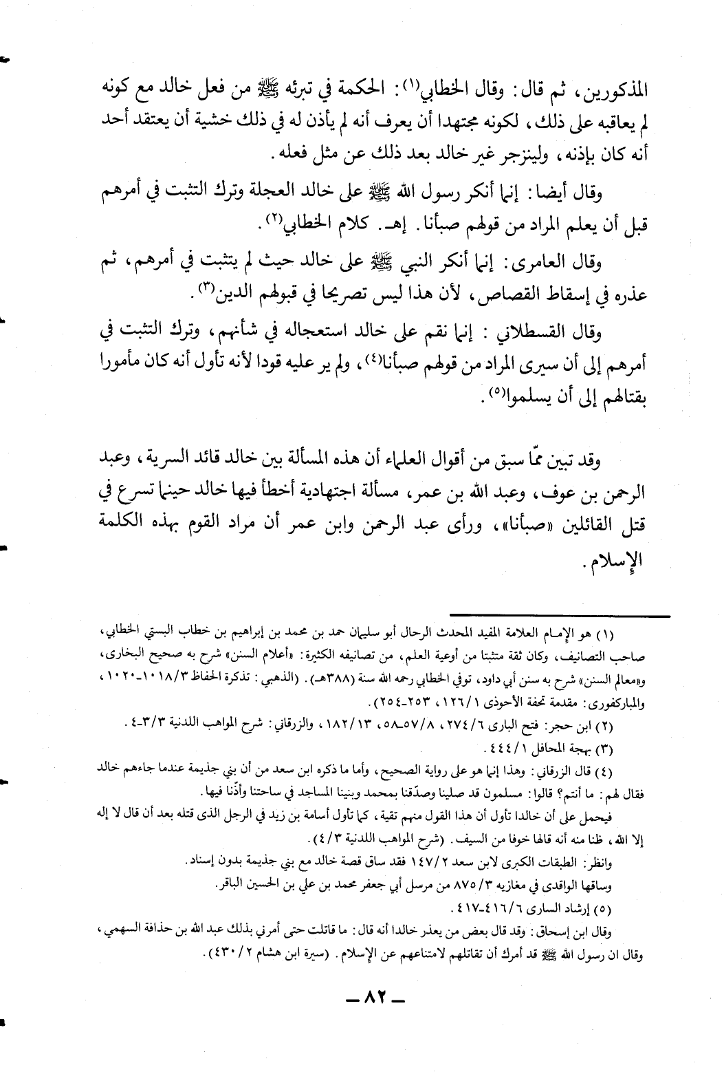 وقال أيضا: إنما أنكر رسول الله - صلى الله عليه وسلم - على خالد حيث لم يتثبت في أمرهم قبل أن يعلم المراد من قولهم صبأنا. ا.? كلام الخطابي2.