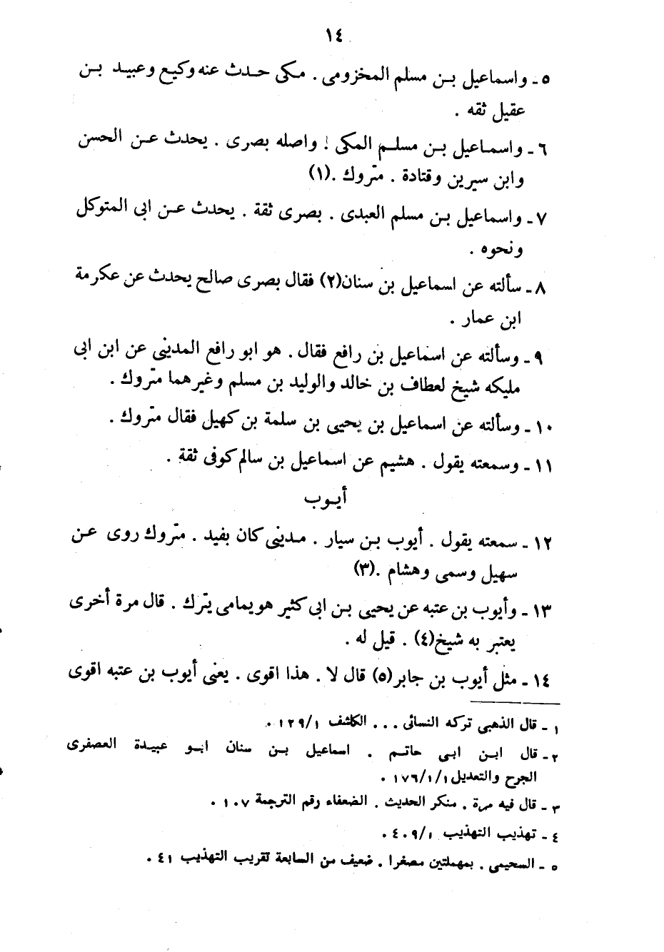13- وأيوب بن عتبة عن يحي بن أبي كثير هو يمامي يترك. وقال مرة أخرى يعتبر به شيخ4 قيل له.