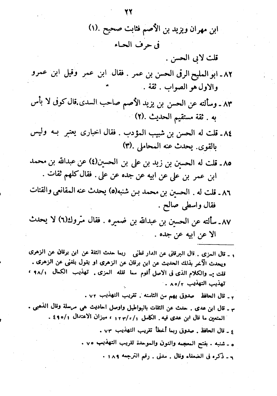 83- وسألته عن الحسن بن يزيد الأصم صاحب السدي. قال كوفي لا بأس به. ثقة مستقيم الحديث2.