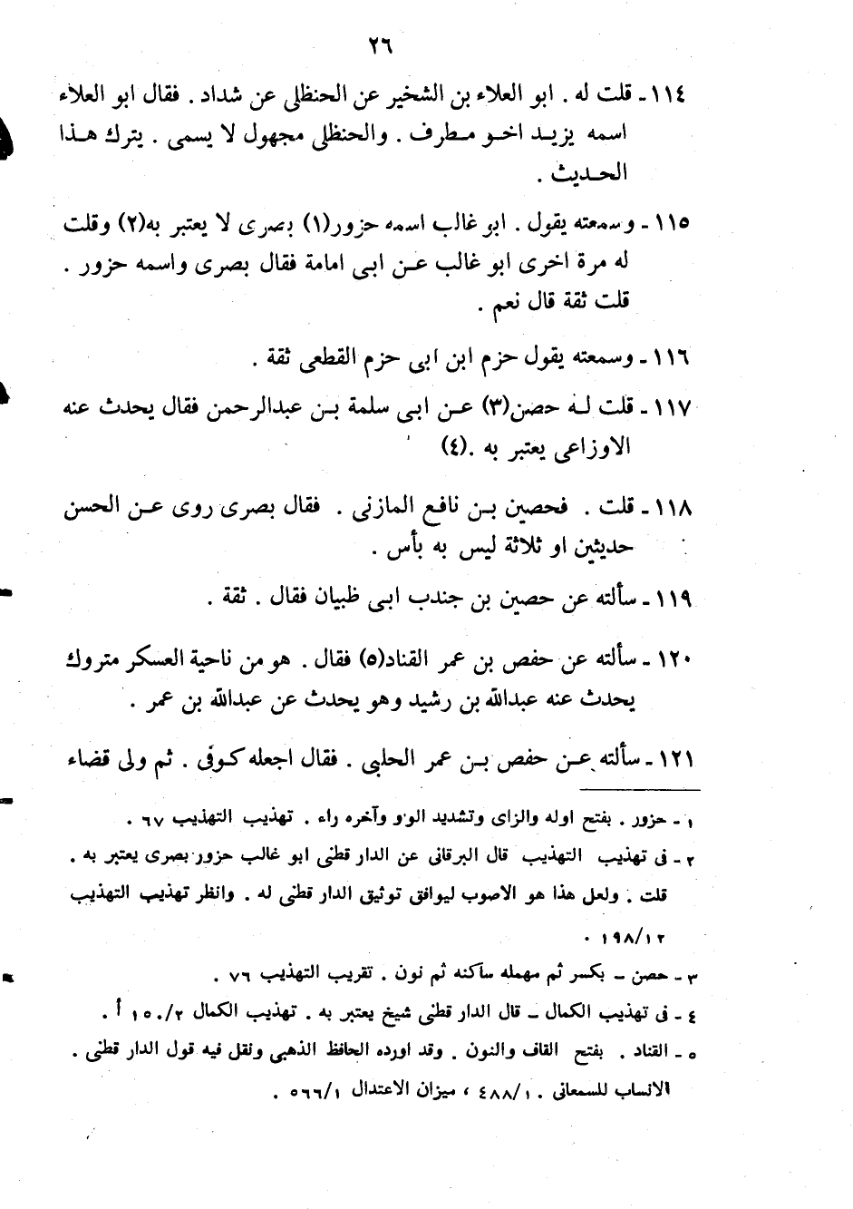 118- قلت: فحصين بن نافع المازني, فقال بصري روى عن الحسن حديثين أو ثلاثة ليس به بأس.