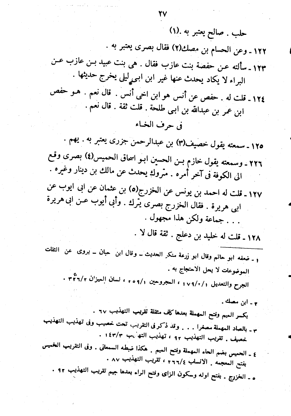 125- سمعته يقول: خصيف3 بن عبد الرحمن جزري يعتبر به. يهم.