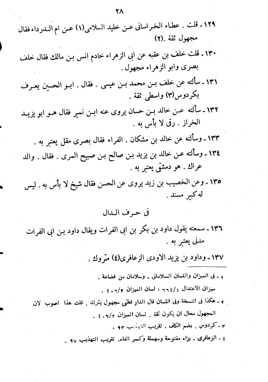 129- قلت: عطاء الخرساني عن خليد السلامي1 عن أم الدرداء فقال: مجهول ثقة2.