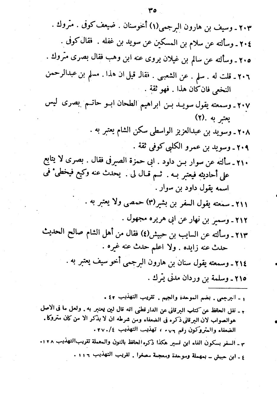 203- وسيف بن هارون البرجمي1 أخو سنان, ضعيف كوفي, متروك.