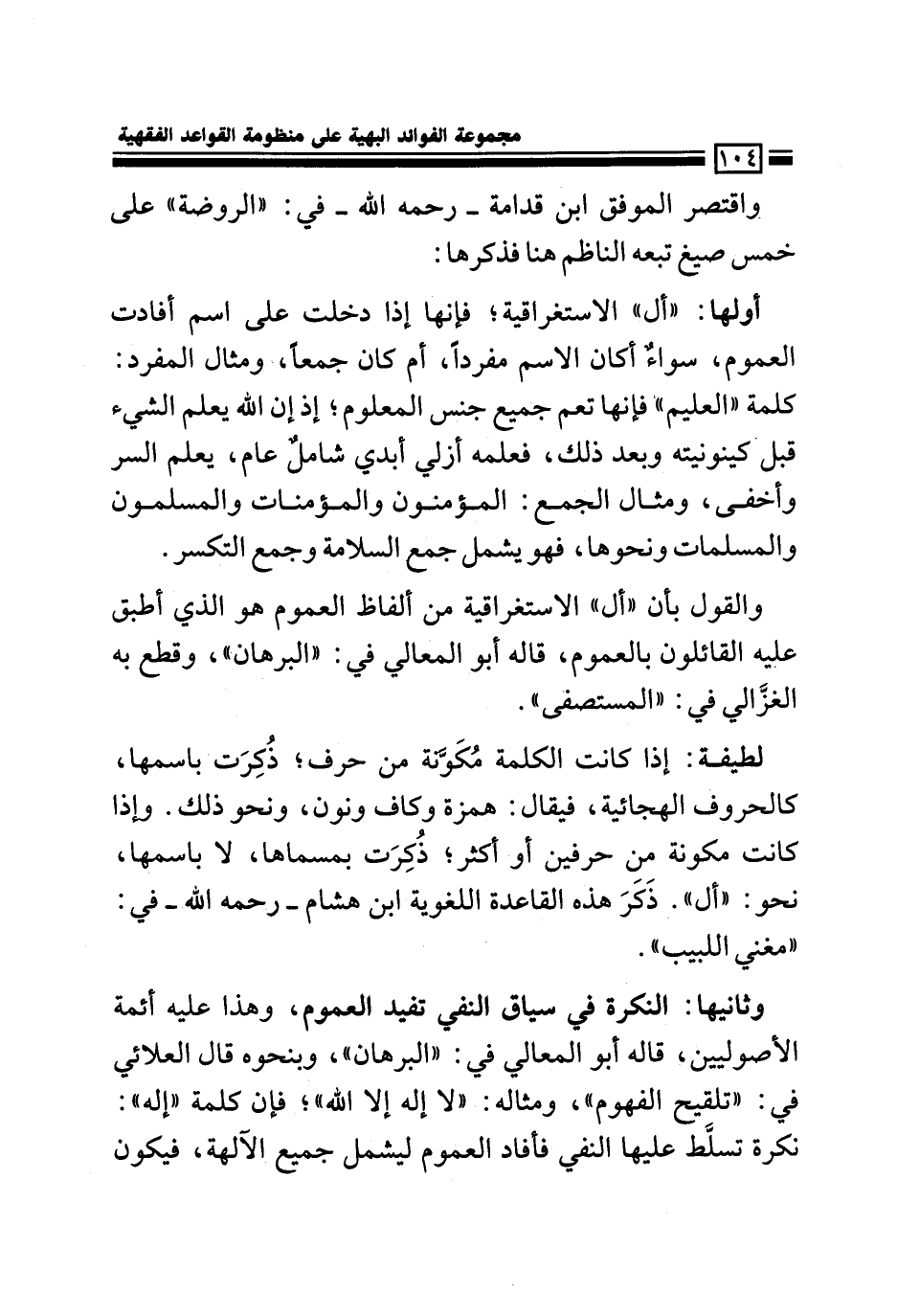 كتاب مجموعة الفوائد البهية على منظومة القواعد الفقهية