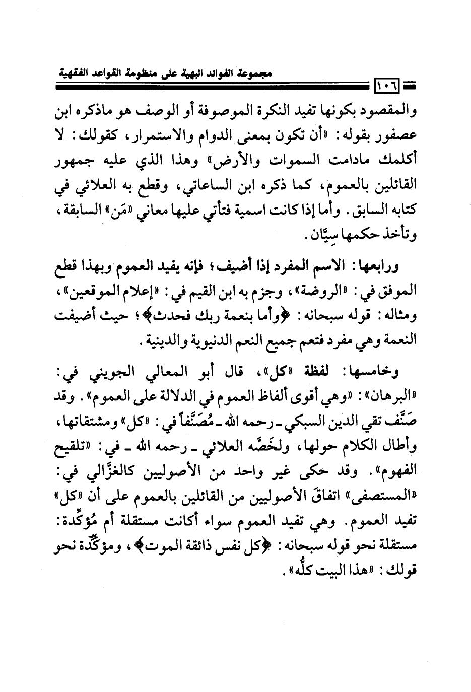 كتاب مجموعة الفوائد البهية على منظومة القواعد الفقهية