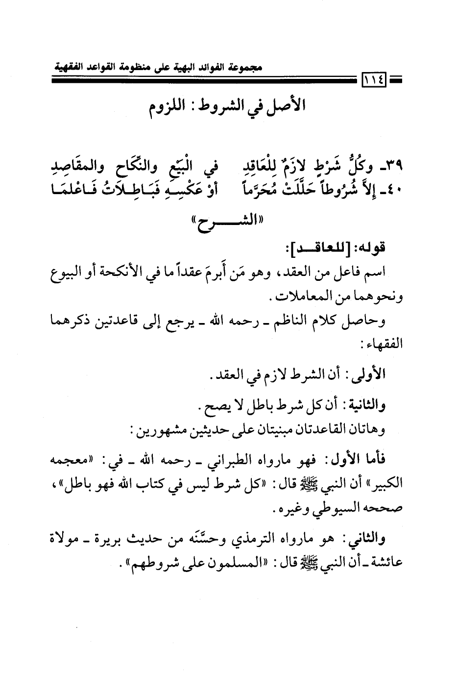 39- وكل شرط لازمٍ للعاقد ... في البيع والنكاح والمقاصدِ