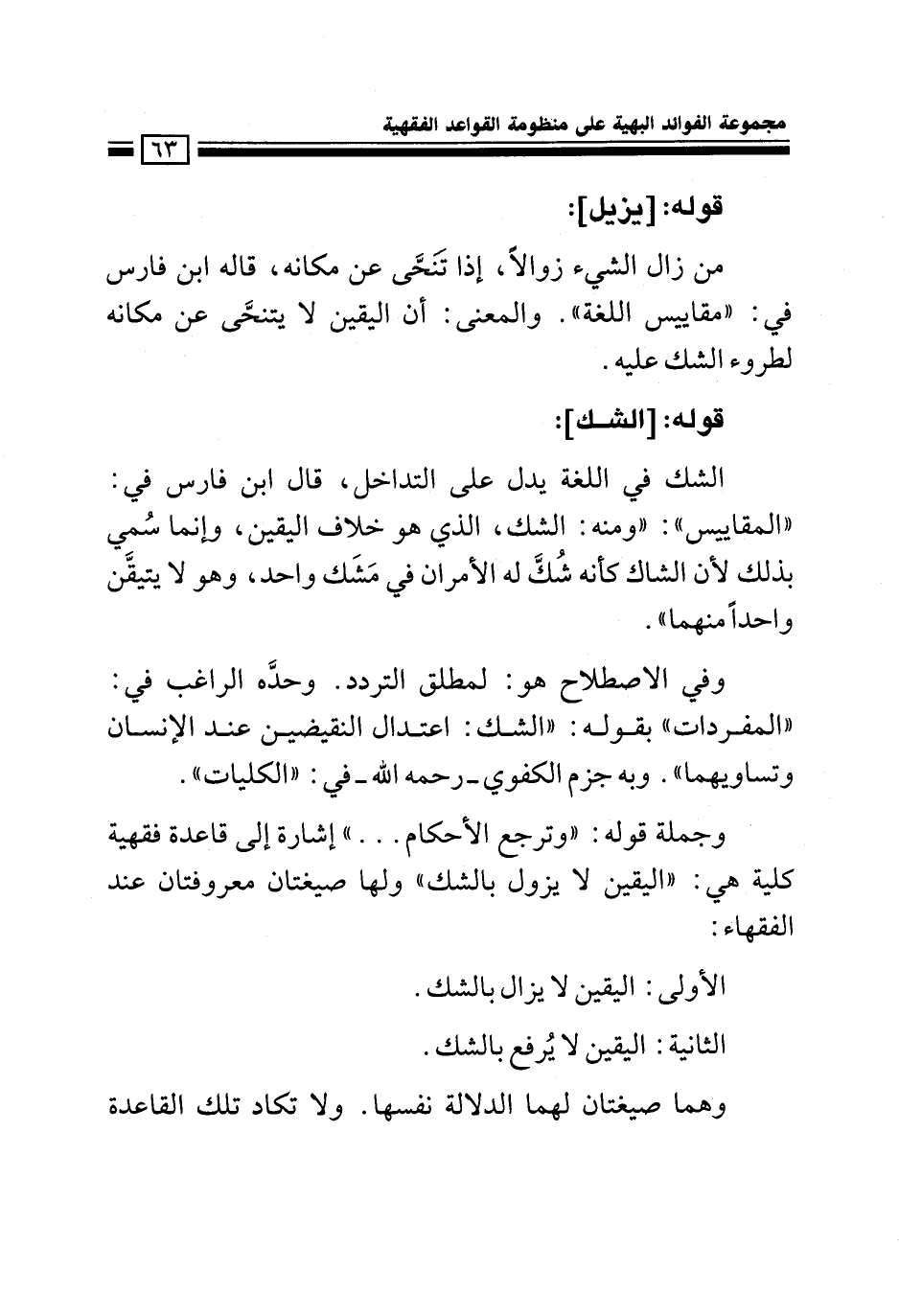 كتاب مجموعة الفوائد البهية على منظومة القواعد الفقهية