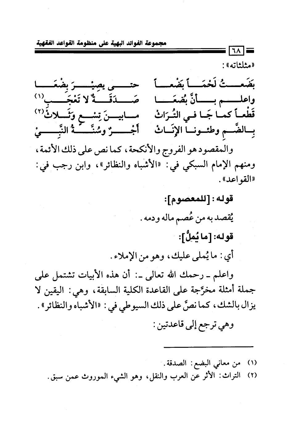 كتاب مجموعة الفوائد البهية على منظومة القواعد الفقهية