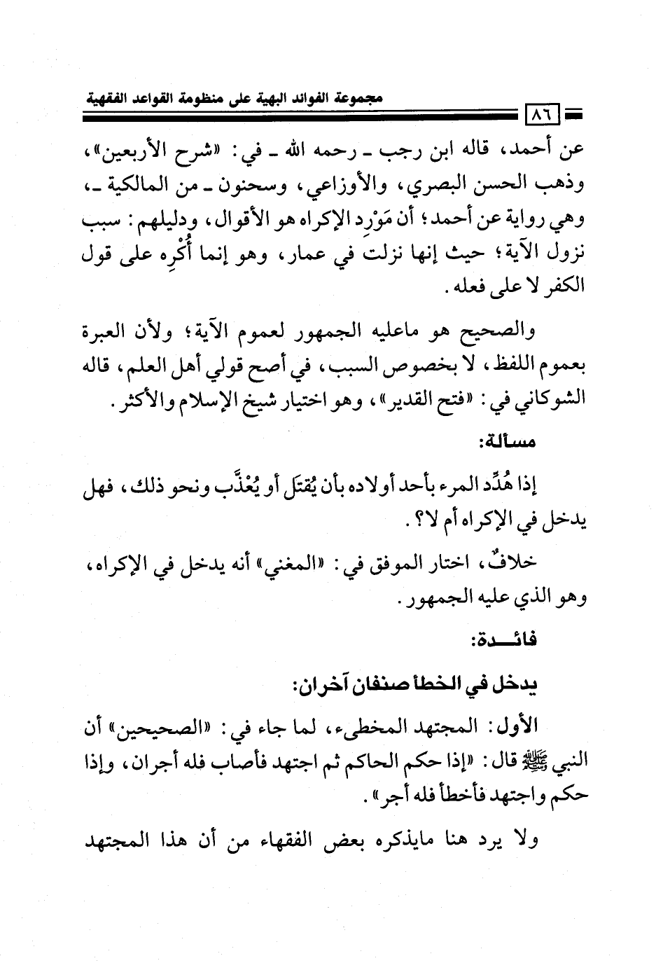 كتاب مجموعة الفوائد البهية على منظومة القواعد الفقهية