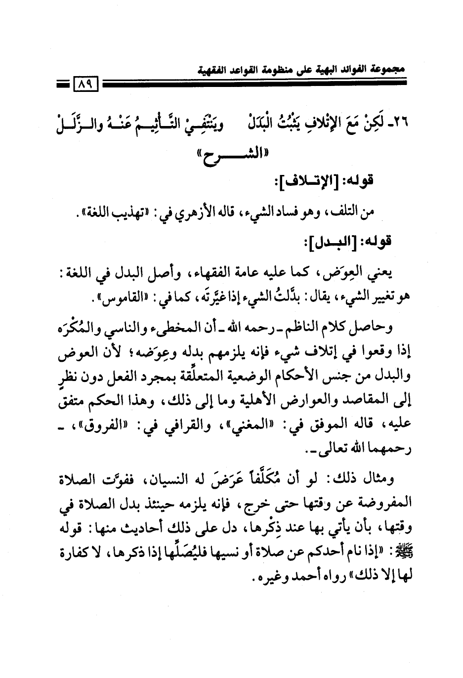 كتاب مجموعة الفوائد البهية على منظومة القواعد الفقهية