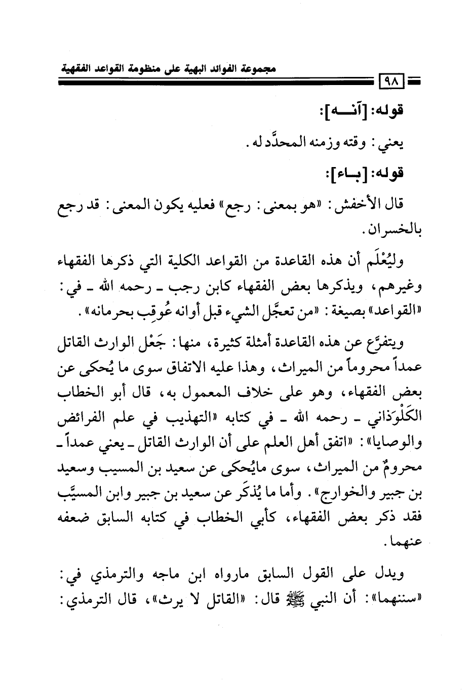 كتاب مجموعة الفوائد البهية على منظومة القواعد الفقهية