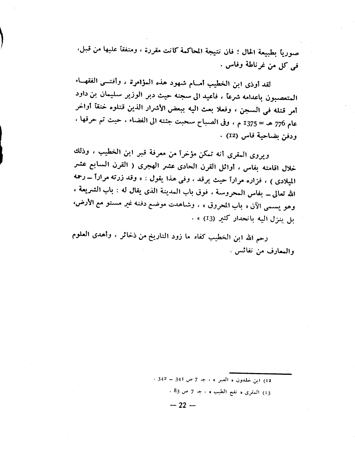 رحم الله ابن الخطيب كفاء ما زود التاريخ من ذخائر، وأهدى العلوم والمعارف من نفائس.