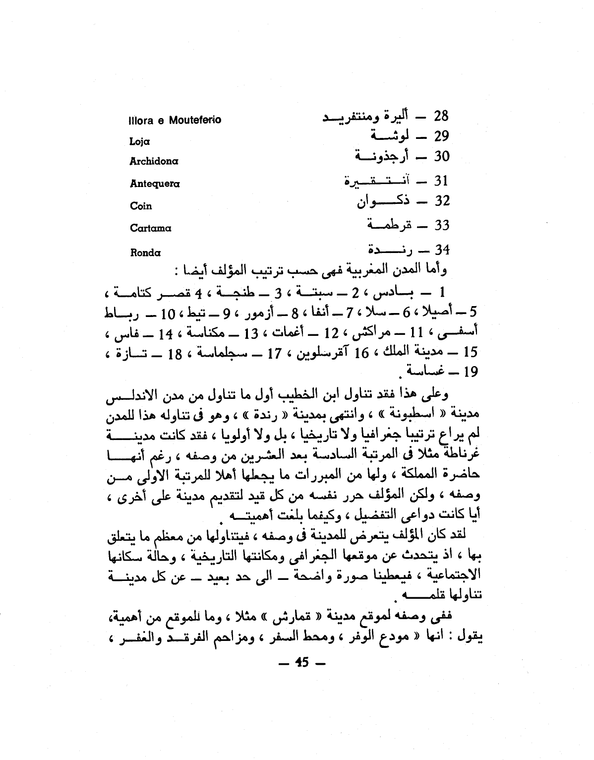 وأما المدن المغربية فهى حسب ترتيب المؤلف أيضا: