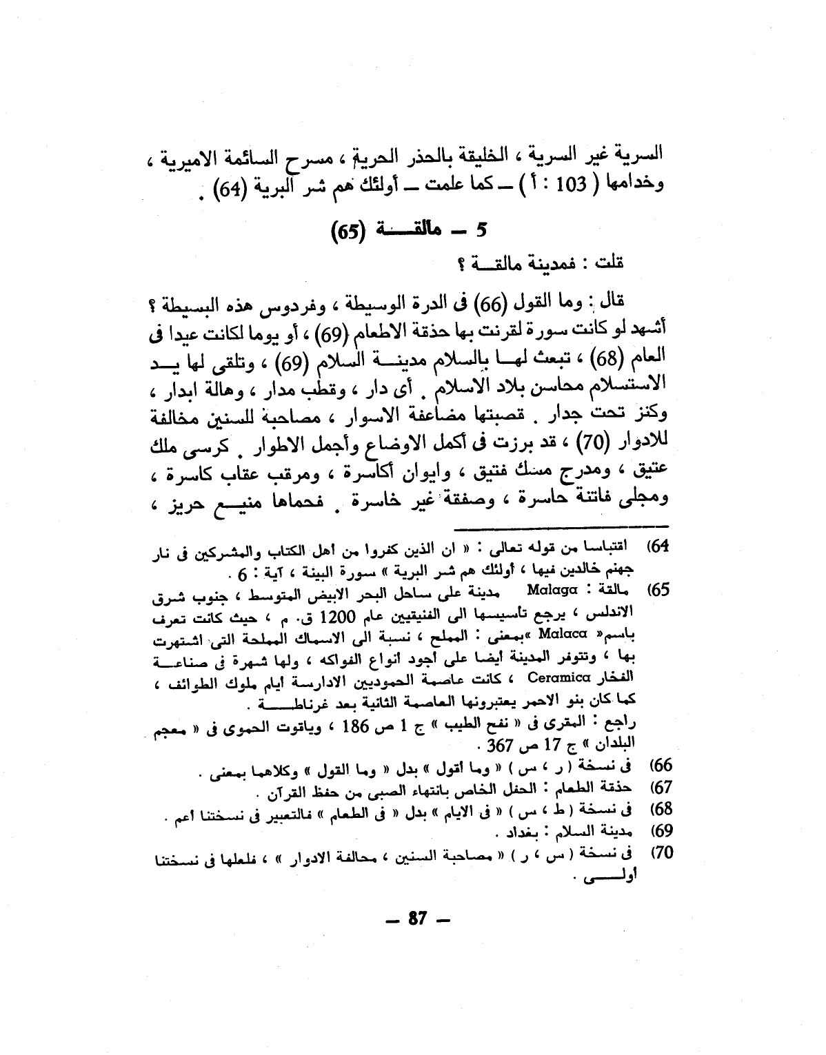 قال: وما القول «66» فى الدرة الوسيطة، وفردوس هذه البسيطة؟