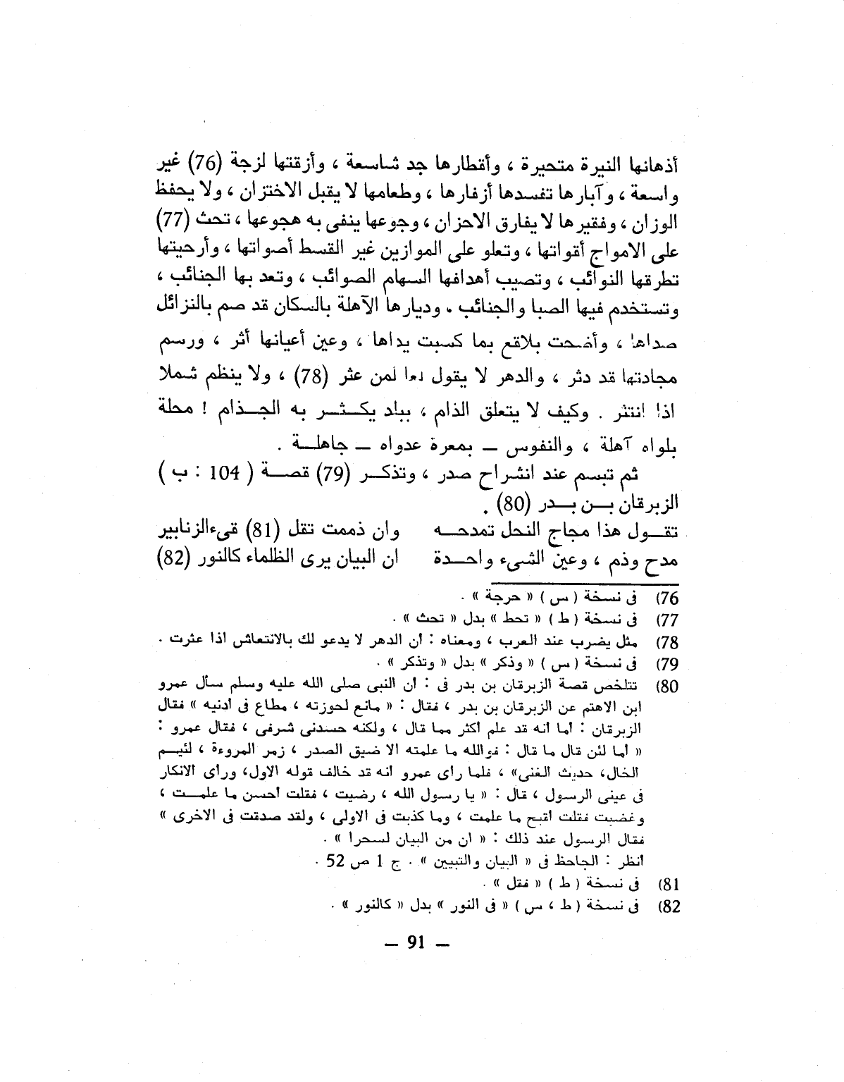 ثم تبسم عند انشراح صدر، وتذكر «79» قصة (104: ب) الزبرقان بن بدر «80» .