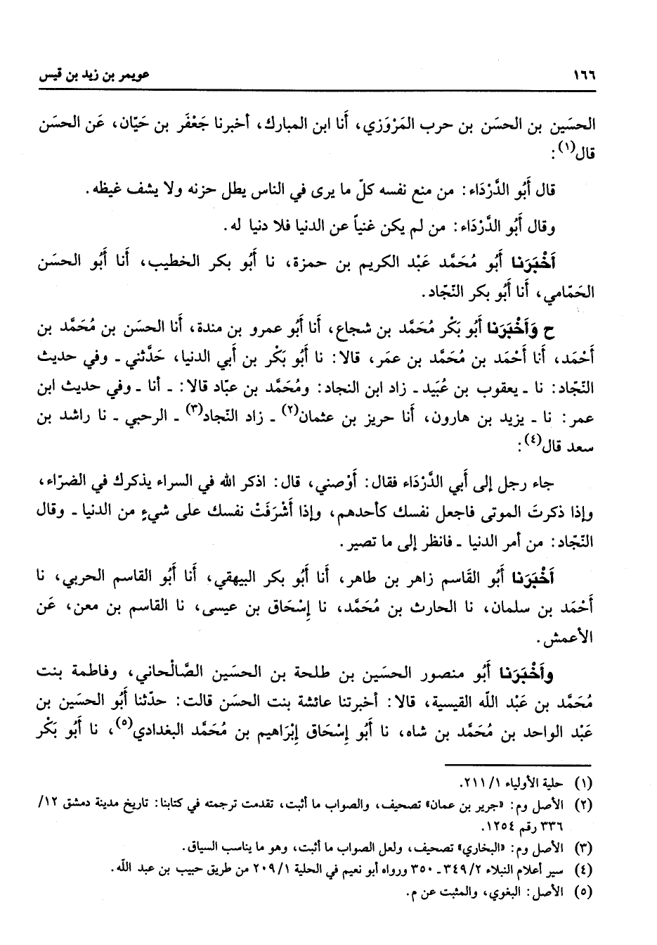 4 - سير اعلام النبلاء 2 / 349 - 350 ورواه أبو نعيم في الحلية 1 / 209 من طريق حبيب بن عبد الله