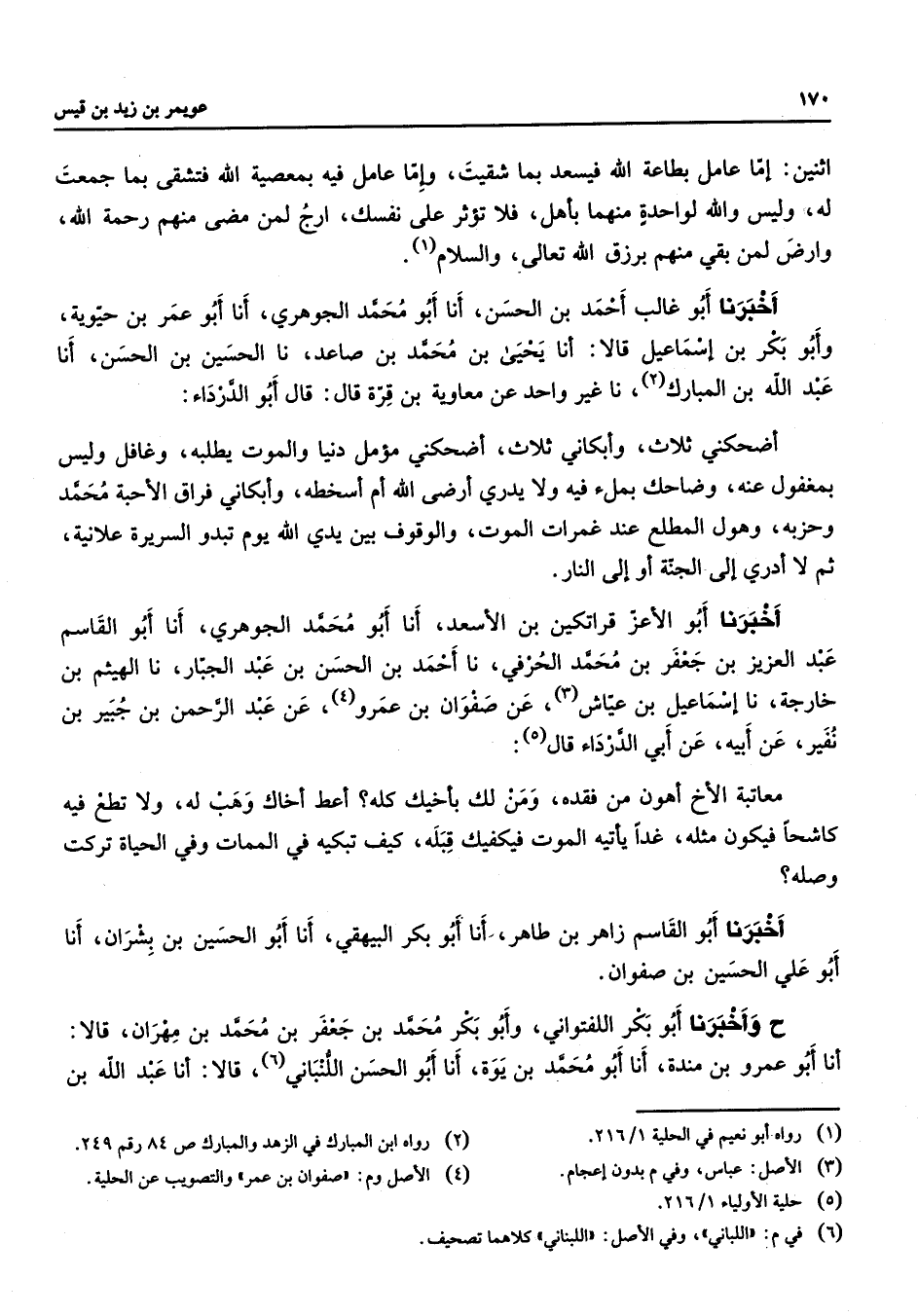 4 - الاصل وم: صفوان بن عمر والتصويب عن الحلية 5 - حلية الاولياء 1 / 216